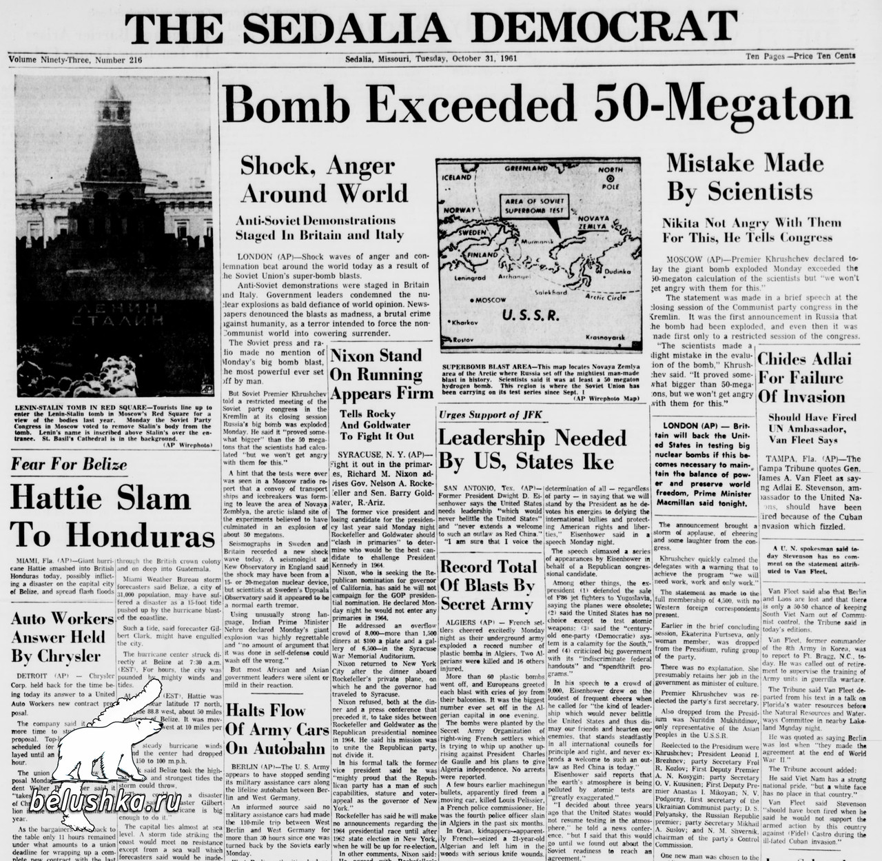 День 30 октября 1961 года, в отличие от 12 апреля, не вошел в политические календари СССР как день национальной гордости советских людей, хотя гордиться было чем. О том рекорде - зловещем, конечно, и во многом вынужденном - советские люди так и не узнали, как и ныне знают о нем далеко не все. И тем не менее...