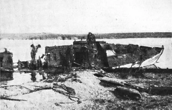 7-го Росляков по разломанной шлюпке попал на берег и достал дров.