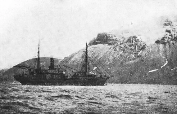 "Персей" меньше чем в сутки проходит Маточкиным Шаром на западный. берег. Этот пролив, часто забитый льдом до отказа, сейчас совершенно свободен. На западном побережьи нас ждут 40 тонн угля, привезенного рейсовым пароходом и оставленного прямо на берегу, в губе Поморской.