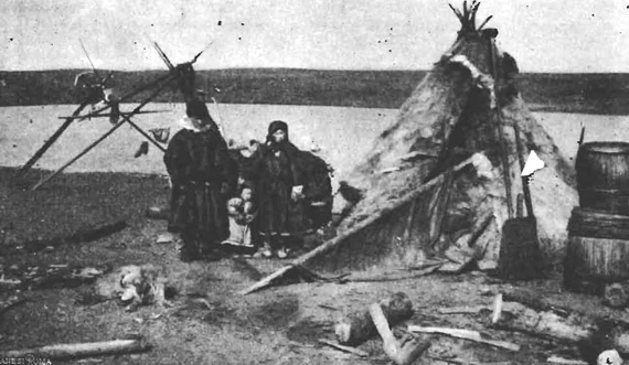 Типичное жилище самоедов называется "чум". Это коническая палатка диаметром 2,5–3 метра, сделанная из оленьих шкур, натянутых на шесты, с отверстием вверху для выхода дыма. Пол, утоптанный и покрытый оленьими шкурами, служит спальным местом для всей семьи. В углу ютятся собаки. О земледелии в этих широтах говорить не приходится, поэтому самоеды вынуждены полагаться на охоту и рыболовство. С октября по апрель, когда море сковано льдом, они охотятся на тюленей, моржей, медведей и оленей, которые в это время спускаются к побережью в поисках пищи под снегом. Летом медведи и тюлени уходят на крайний север острова, где море покрыто льдами. В этот сезон самоеды охотятся на оленей, которых в изобилии находят в горах, и ловят рыбу вдоль рек с помощью примитивных ловушек и сетей.