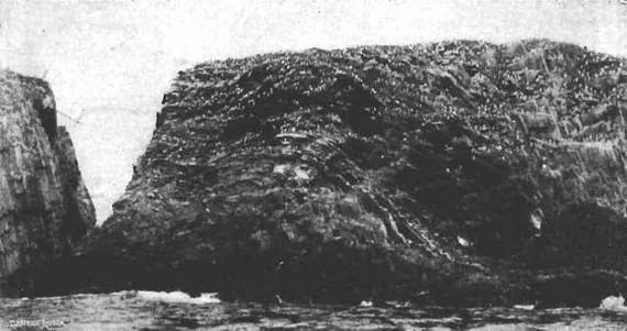 В Кармакулах мы посетили одну из местных достопримечательностей — скалу, которую русские называют "Птичий базар". На ней собираются миллионы птиц, в основном чистиков. Они сидят, тесно прижавшись друг к другу, на всех выступах скалы, иногда взлетают огромными стаями, но стрельба по ним не заставляет их улететь.