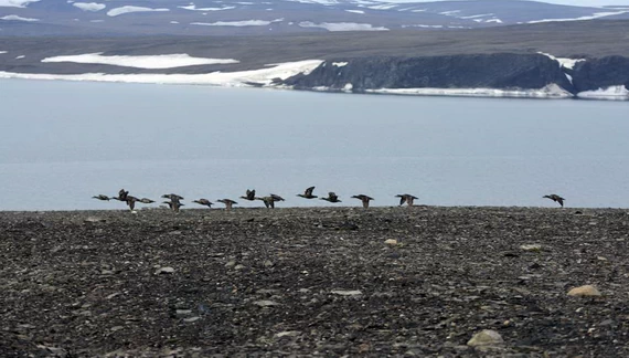 Со всеми красотами архипелага полярники смогли познакомиться лишь весной, после окончания зимовки. "Чем светлее становилось на острове в полдень, тем заметнее оживала суровая природа Арктики. На льду залива стали появляться отдыхающие тюлени. Они расширили свои проруби-отдушины и часами лежали на льду, каждые две-три минуты поднимая головы, чтобы осмотреться. Собаки носились по всему заливу, но при их приближении тюлени проворно соскальзывали в лунки. Около некоторых лунок мы замечали даже по два тюленя, и с каждым днём их становилось всё больше. Но медведей мы так и не видели. Выходим на берег. Ровный след медвежьих лап с противоположного берега залива тянулся прямо к нашей палатке (палатка стояла на месте проведения футштоковых наблюдений). Зверь обошёл её вокруг, через полость сунул морду внутрь, но, не обнаружив ничего привлекательного, вышел на берег, а затем повернул в море, в нагромождения торосов… Прежде, чем вернуться домой, поднимаемся на гору Якоби. За ней высятся горные хребты, покрытые вечными льдами, вправо и влево от нас медленно сползают в море ледники".