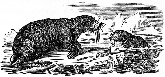 Морж (Trichechus rosmarus) вблизи береговъ южнаго острова Новой Земли рѣдко встрѣчается, чаще попадается въ голомянномъ морѣ, дальше отъ береговъ. Когда "открываются" Карскія Ворота, то на льдинахъ приносятся и моржи. Вообще, по замѣчанію поморовъ, когда дуетъ нѣсколько дней N и NO вѣтеръ, ледъ выходитъ изъ Карскаго моря и южнымъ вѣтромъ приносится къ западному берегу Новой Земли. Въ 1883 г. ледъ появился въ началѣ іюля и на льдинахъ видѣли двухъ моржей; въ иные года это бываетъ раньше. Ранней весной, моржи отъ сѣверной оконечности Новой Земли доходятъ до Маточкина шара; когда-же отсюда лѣтомъ ледъ уносится, то и моржи "угребають" въ Карское море. Вообще въ настоящее время моржовый промыселъ сильно упалъ (я слышалъ, что гдѣ-то въ Архангельской губ. уцѣлѣло всего одно заведеніе, занятое выдѣлкой моржовыхъ шкуръ), хотя въ прежніе года звѣря бывало очень много по всему берегу (самоѣдъ Ефремъ, жившій близъ южнаго Гусинаго м. (Гагарій), весной убилъ двухъ моржей, которыхъ и продалъ, какъ онъ говорилъ, нѣмцамъ, вѣроятно, норвежцамъ); вину этого поморы сваливаютъ на норвежцевъ, которые сильно пугаютъ моржа выстрѣлами (Для охоты на моржа, норвежцы, по словамъ поморовъ, употребляютъ особое оружіе, родъ небольшой пушки, въ которую, вмѣсто ядра, кладется острога; съ выстрѣломъ, оружіе вонзается въ тѣло звѣря. При этой охотѣ, изъ ружей стрѣляютъ и тюленей, такъ что, дѣйствительно, почти постоянно раздаются выстрѣлы. Острога устраивается такимъ образомъ, что рожки ея, вращающіеся на шарнирахъ, прикладываются къ стержню, когда оружіе входитъ въ тѣло звѣря, и мѣшаютъ его выходу, что способствуетъ болѣе удачному лову. Мнѣ лично не приходилось наблюдатъ такой охоты.). Въ прежніе годы моржей было такъ много, что даже при употреблявшейся въ то время ловлѣ ихъ острогой промышлятъ было выгодно. До чего неудобна была острога (она имѣла зазубрину, какъ у рыболовнаго крючка), можно судитъ по тому, что если изъ 8 встрѣтившихся моржей удавалось "забагрить" одного — это считалось удачей. "Моржа было тамъ много и онъ былъ такъ ненапуганъ, говорятъ поморы, что бывало ѣдемъ въ карбасѣ, а онъ "выстанетъ" кругомъ и смотрить... Совсѣмъ не зналъ человѣка!" Шкура моржа цѣнится въ Архангельскѣ рублей до 40.