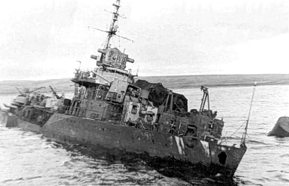 Рейд был почти пустым. Затонули ЭМ "Грозный", "Разъяренный", ПЛ С-84, С-20, Б-20, тральщик Т-218 и все мелкие суда и баржи. ЭМ "Гремящий" остался на плаву, но было видно, что он тонет. Корабль дымил и стоял с креном. В целях спасения научных данных, находившихся на нашем эсминце, на корабль высадились: командир корабля А.И. Алферов, помощник командира корабля С.А. Бакулин, заместитель командира по политчасти П.Ф. Парий, корабельный врач П.А. Доронов и 30 человек старшин и матросов во главе с командиром БЧ-5.