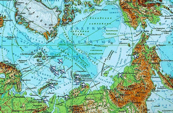 Основные аэродромы, использовавшиеся подразделениями Оперативной группы Дальней авиации ВВС СССР в Арктике в середине 50-х годов.
