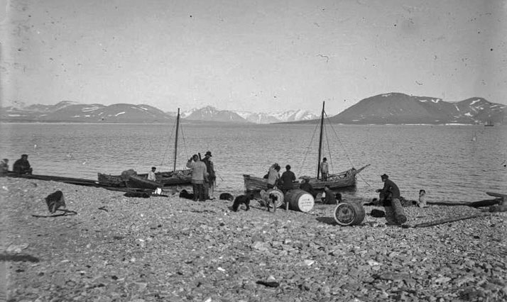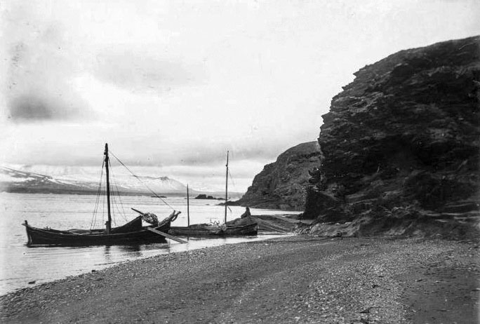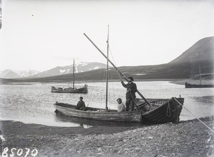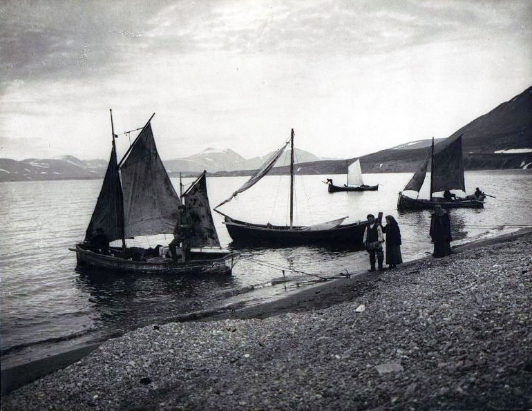 - Маточкин Шар. Флотилия из 3-х карбасов и одной шлюпки ненцев и 4-х членов французской полярной экспедиции перед поездкой на Карскую сторону.