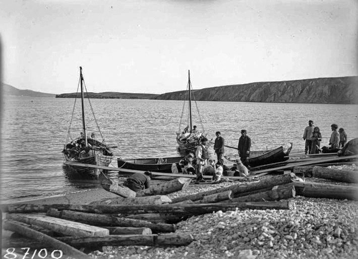 - Дрова, выгруженные пароходом, для топлива в становище Маточкин Шар