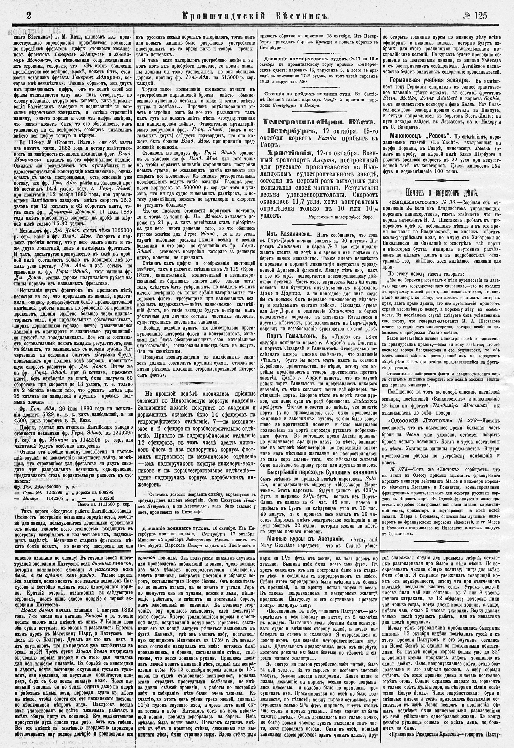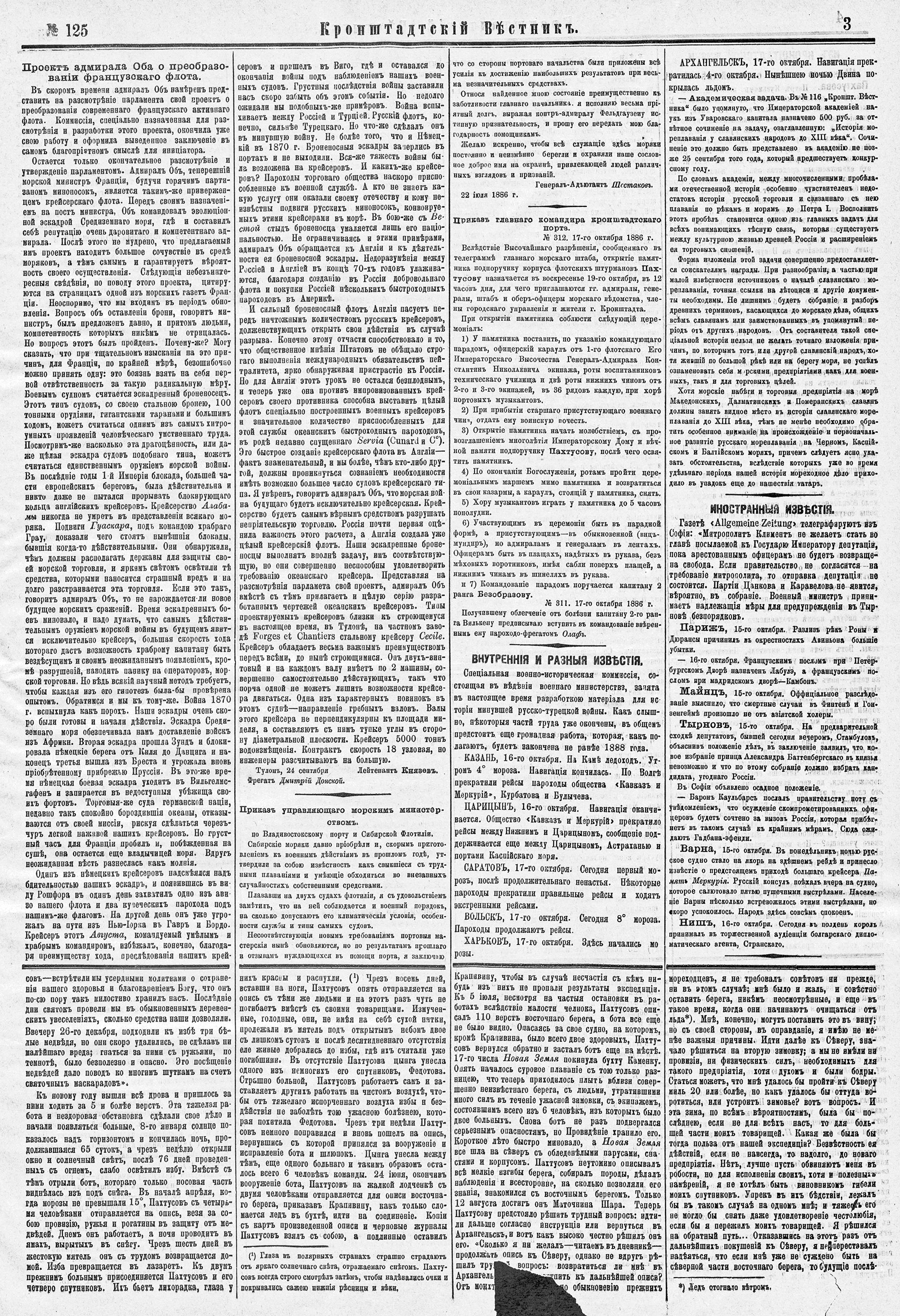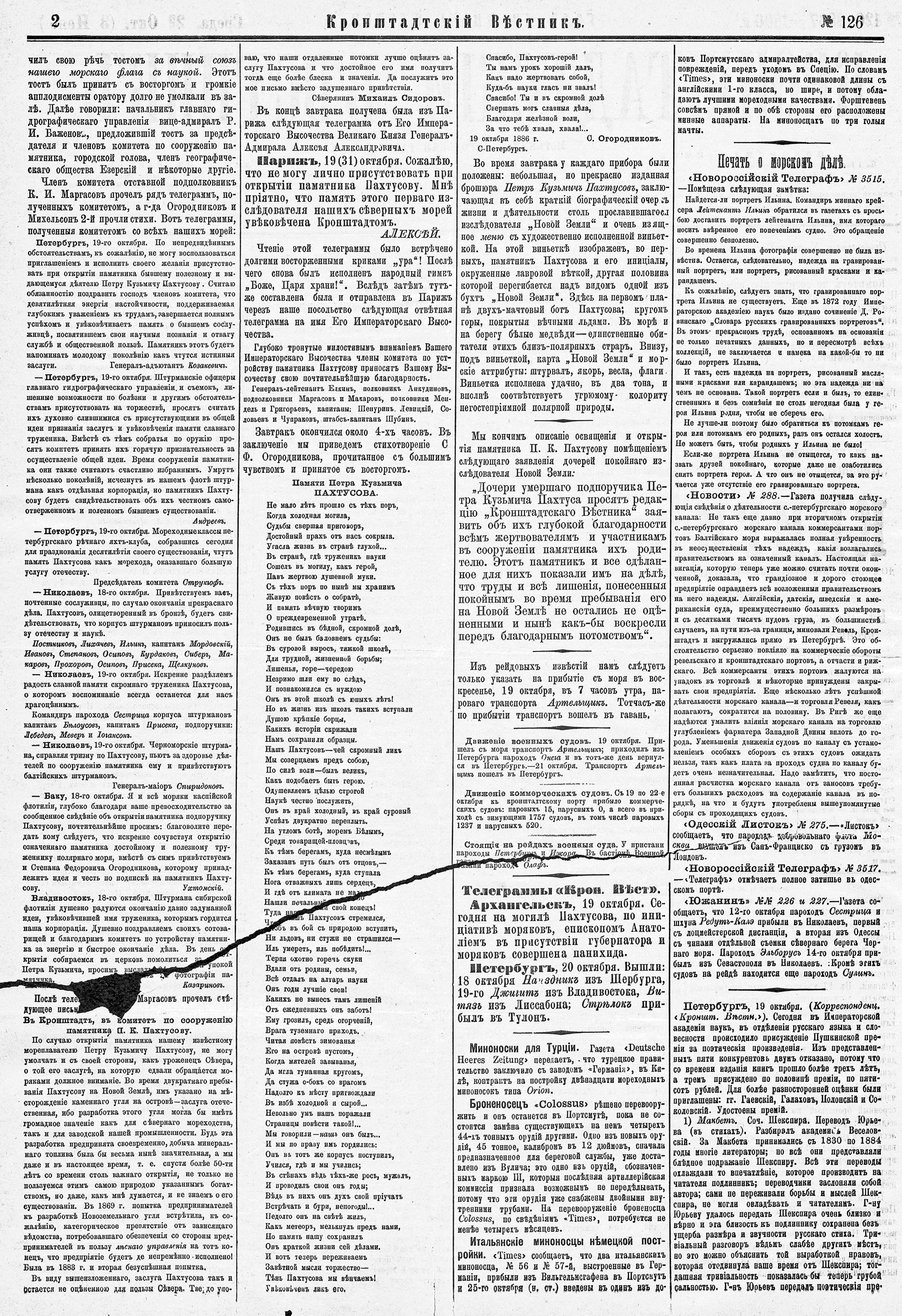 Газета "Кронштадтский вестник" №№125-126 1886 г. со статьей о П.К. Пахтусове и репортаже об открытии ему памятника.