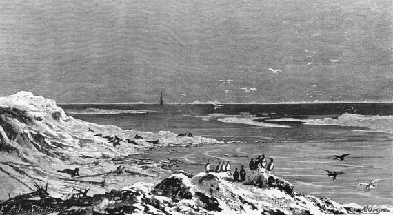 Мясников, как опытный промысловик, взялся за это дело. Место, где путешественники высадились, называлось Базаром: утки в таком количестве покрывали окрестные скалы, что их крики были слышны за пять вёрст. Менее чем за полчаса они поймали сто пятьдесят уток и собрали пятьсот яиц.